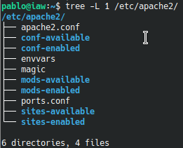 Ejecutamos los siguientes comandos para actualizar los paquetes disponibles en los repositorios e instalar Apache. También instalaremos tree para ver el contenido de los directorios de forma tabulada.