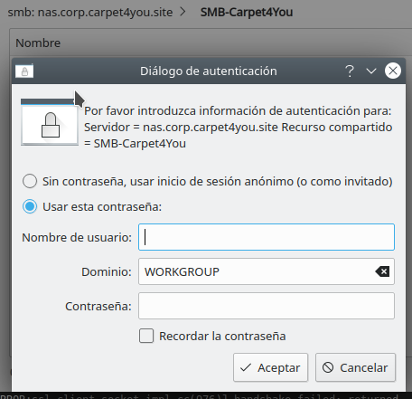 Desde nuestra máquina escribimos smb://nas.corp.carpet4you.site.